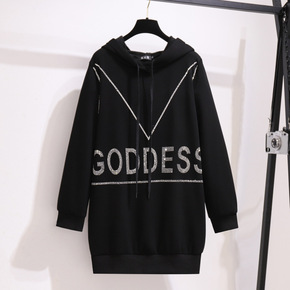 2022秋冬款保暖加绒加厚刺绣中长款宽松大码连帽卫...