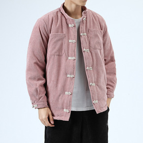 日系冬季新款男装男士休闲棉衣灯芯绒棉袄中国风复古盘...