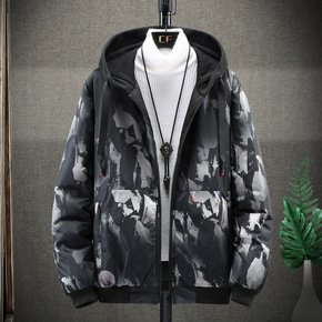2021年秋冬季新款两面穿加肥加大潮流时尚连帽薄棉...