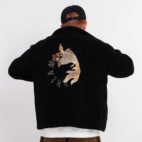悟字日系连帽加绒加厚外套男装拉链卫衣定制棉服速卖通...