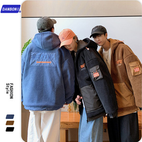 DBN男装#羊羔绒外套冬季男士休闲港风情侣潮流棉袄...