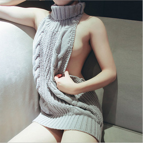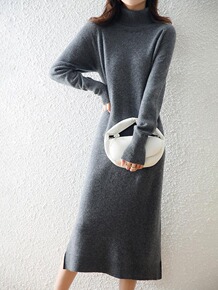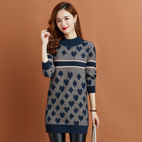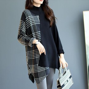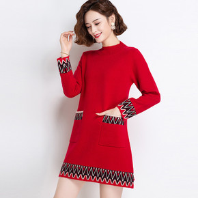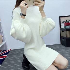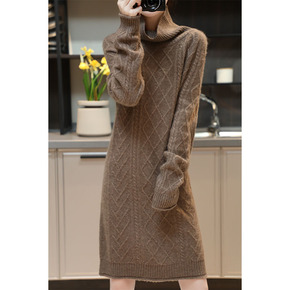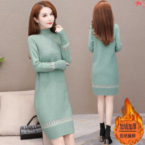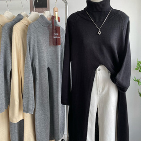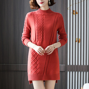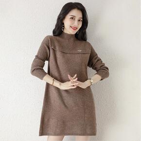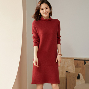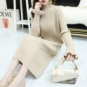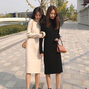 2022秋冬新款中长款宽松套头半高领打底毛衣裙过膝...