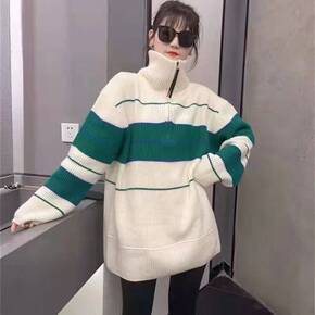 不加绒/加绒加厚毛衣女秋冬新款针织衫条纹宽松慵懒风...