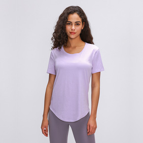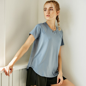 2021跨境新款速干冰瓷棉运动t恤女 轻薄柔软宽松...