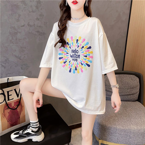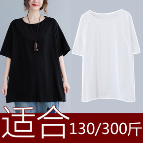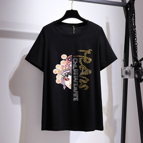 烫钻新款加肥加大码显瘦宽松中长款短袖T恤女200/...
