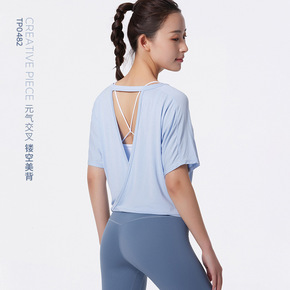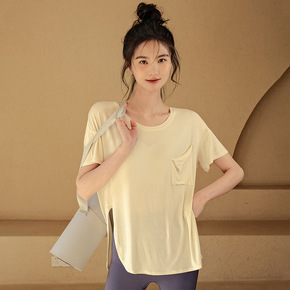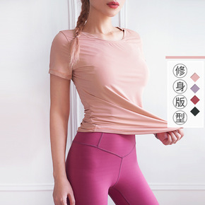 2022新款瑜伽服女 春夏短袖t恤运动服装宽松短款...
