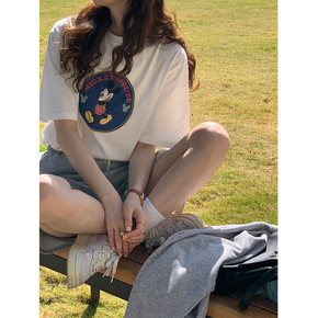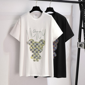 2022夏季新款女装韩版显瘦复古宽松小熊圆领短袖T...