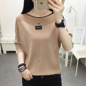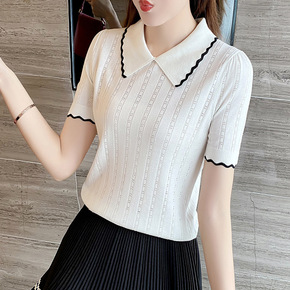 女短袖冰丝t恤女夏季新款勾花镂空薄款针织衫夏装宽松...