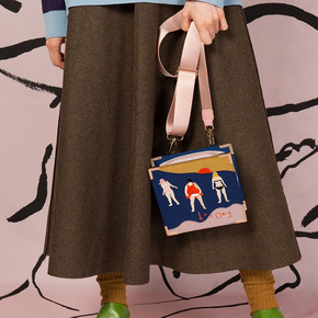 YIZISTORE原创刺绣绒布拼皮复古单肩包女休闲...