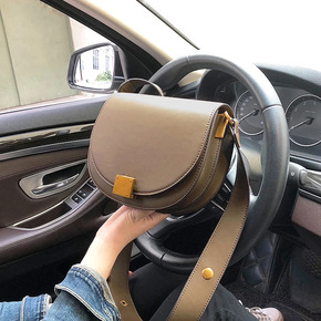 牛皮女包2020新款时尚马蹄扣单肩斜跨半圆包复古牛...