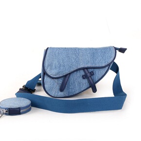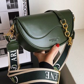 乔戈上新迷你半圆马鞍包斜纹布料宽肩带斜挎包链条单肩...