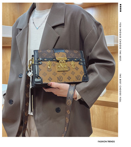 箱包大小:中 适用场景:日常搭配 箱包潮流款式:小方包 开盖方式:锁扣 流行元素:车缝线、拼...