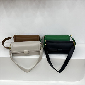 新款女包大容量单肩斜挎包韩版时尚彩色宽肩带纯色长方...