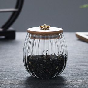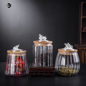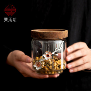 创意玻璃茶叶罐 透明密封罐储物罐花瓣罐普洱茶罐子竹...