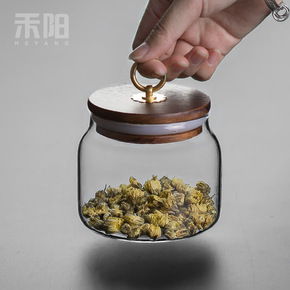 禾阳 相思木玻璃茶叶罐 便携密封罐储物罐透明小号茶...