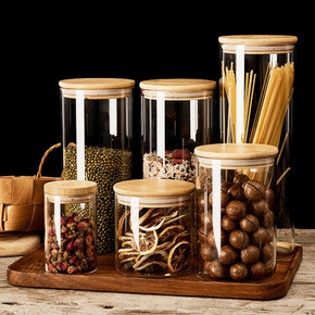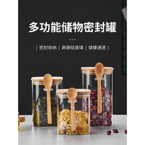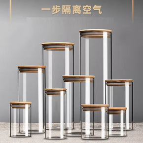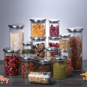 不锈钢盖透明玻璃密封罐 厨房五谷杂粮储物罐 高硼硅...