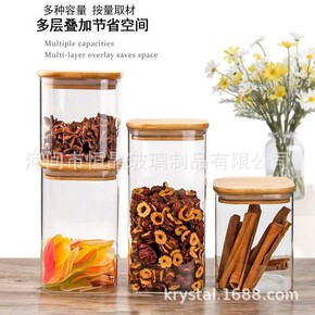 批发透明玻璃方形储物罐厨房家用密封罐玻璃茶叶罐咖啡...