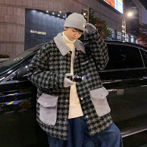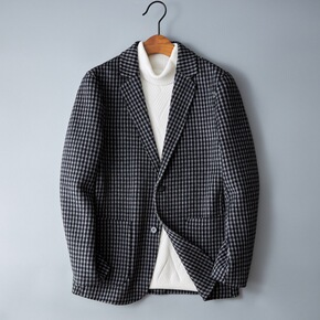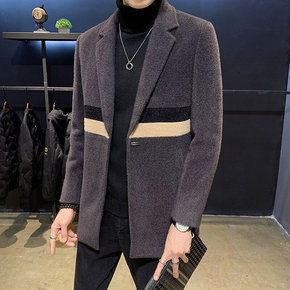 双面呢格子外套男短款羊毛大衣2021秋冬季加厚男士...