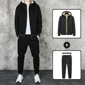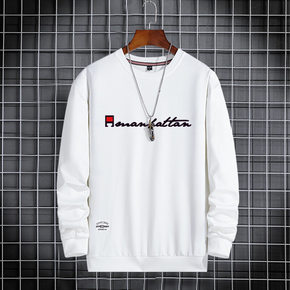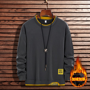 卫衣男秋款圆领假两件套头衫运动服休闲加绒长袖T恤春...