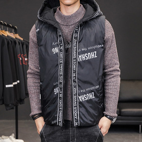 羽绒棉马甲男士秋冬季潮流保暖加厚坎肩背心连帽马夹外...