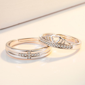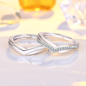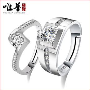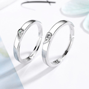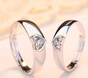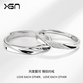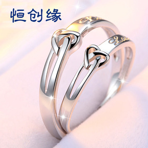 S925纯银韩版情侣对戒 时尚简约活口永结同心情侣...