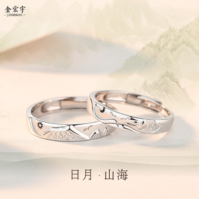 原创设计日月星辰情侣对戒925银文艺小众纯银戒指情...