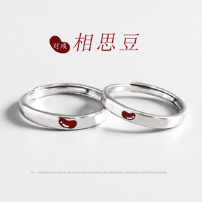 s925纯银相思豆戒指气质个性男女活口指环红豆情侣...