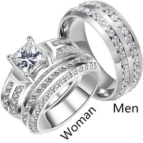 灰公主2022新款镶钻情侣戒指一对 s925纯银男...