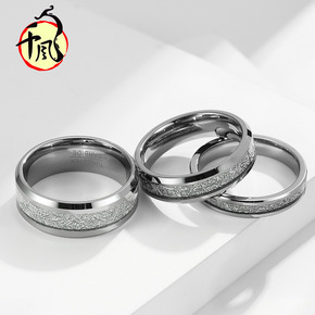 亚马逊468mm双斜边内弧镶嵌冰丝钨钢戒指男女情侣...