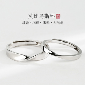 莫比乌斯环情侣戒指一对男女S925纯银对戒日韩简约...