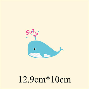 简约卡通动物鲸鱼图案热转印装饰贴柯式过粉A级烫画印...