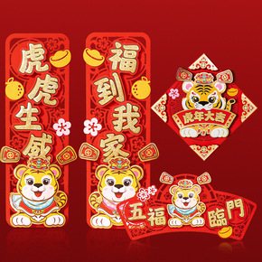 创意2022卡通生肖虎年新年装饰过年春节大门贴晖春...