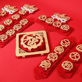 新年用品春节对联2022植绒贴纸小利是钱春联装饰墙...