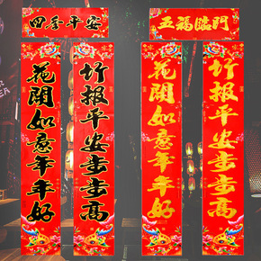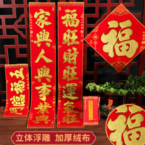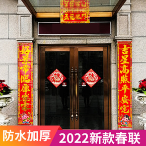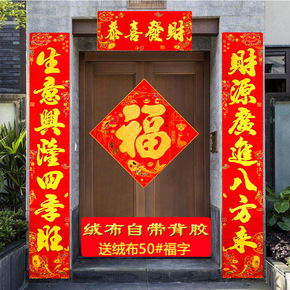 2022春节对联家用新年虎年带胶金字植绒布春联防盗...