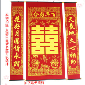 植绒布烫金正喜中堂结婚对联客厅挂画烫金喜字中堂 2...