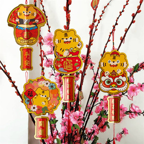 2022虎年装饰春节过年对联挥春挂件创意舞狮新年室...