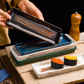 创意陶瓷寿司盘 日式和风不规则平盘黑色早餐盘 家用...