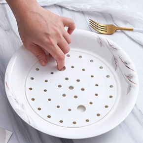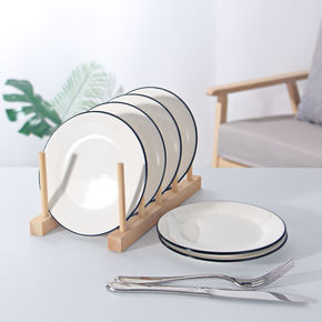 陶瓷平板盘白木纹西餐牛排蛋糕甜点烘焙餐具9英寸圆托...