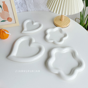 首饰收纳可爱ins韩国创意花朵爱心陶瓷甜品点心碟沙...