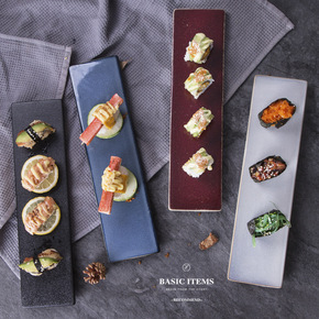 新品北欧盘子长方形长条盘陶瓷点心盘西餐盘创意小吃日...