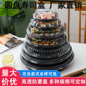 厂家直销印花外卖打包盒一次性日式圆形拼盘批发餐盒寿...