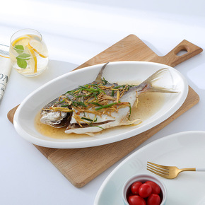 简约酒店瓷厚边椭圆形盘蒸鱼盘西餐盘寿司盘陶瓷旦形盘...
