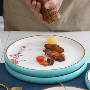 酒店用品冷菜盘圆形色釉融合菜盘特色创意餐具摆盘意境...