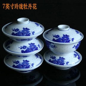 景德镇合器汤碗陶瓷碟子带盖盘子菜盘家用青花玲珑盖碗...