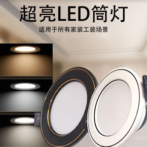 窄边筒灯LED嵌入式筒灯无主射灯客厅顶灯孔灯牛眼别...