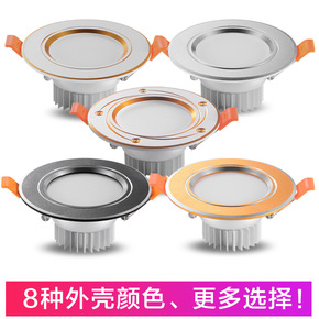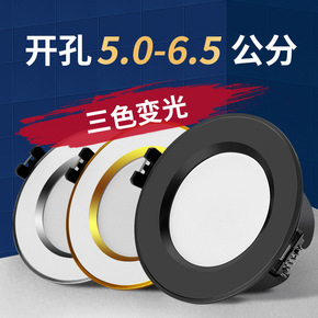 LED筒灯家用3W5W嵌入式三色天花客厅吊顶射灯超...