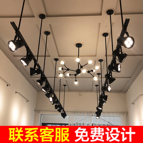 北欧现代客厅背景墙服装店铺COB导轨射灯实木家用照...