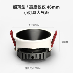 led筒灯超薄7.5开孔灯家装铝材射灯天花4w嵌入...