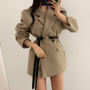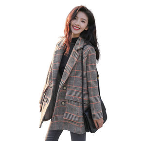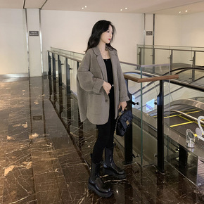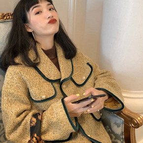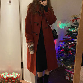 春秋新款复古英伦风时尚毛呢外套女韩版宽松中长款小个...
