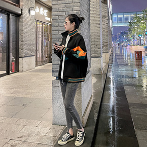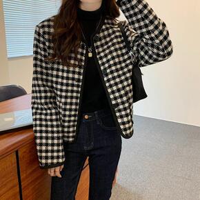 2021年秋季新款宽松女小个子长袖外衣短款洋气格子...